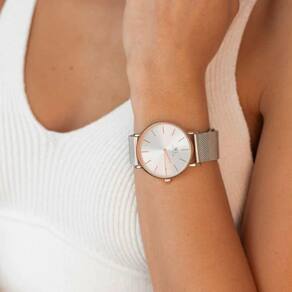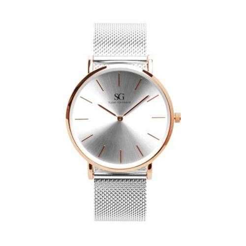 O Relógio Saint Germain Pulseira Prata Harlem Full Rosé Gold 40mm com pulseira de PI aço inoxidável prata possui 40mm de diâmetro. A caixa é de metal rosé gold e o mostrador metálico prateado, vidro com mineral endurecido com alta resistência.
