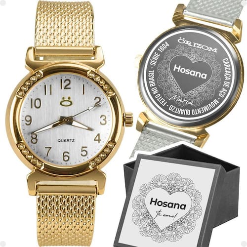 Além disso, surpreenda alguém especial com uma personalização única Adicione o nome da pessoa amada tanto na tampa do relógio quanto na caixa premium. Acrescente um toque pessoal e memorável ao seu presente