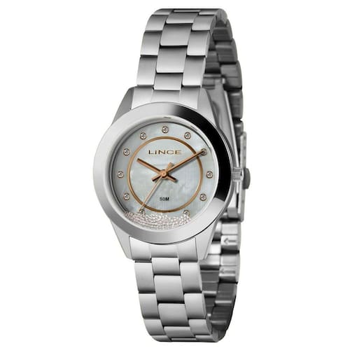 Especificações Marca: Lince Gênero: Feminino Modelo: LRM4733L34 B1SX Cor da pulseira: Prata Cor do mostrador: Prata com detalhe em madrepérola branca com strass Material da caixa: Metal Material da pulseira: Aço Material do vidro: Cristal mineral duplo Tamanho da caixa: 34 mm Resistente a água: Sim Nível de resistência a água: 50 m Funções: Analógico, fundo de pressão Garantia: 1 ano