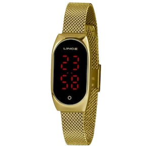 Este relógio feminino possui um design moderno e sofisticado, com sua pulseira dourada que adiciona um toque de glamour ao seu look. Além disso, o mostrador digital em LED proporciona uma fácil leitura das horas.