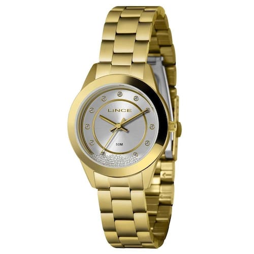 Relógio Lince Feminino Ref: Lrg4733l34 S1kx Casual Dourado DESCRIÇÃO DO PRODUTO: Caixa: Metal Pulseira: Aço Medida da caixa: 34 mm Vidro: Cristal Mineral Duplo Resistência à água: 50m Funções: Analógico Mostrador prateado com strass Detalhes de strass intervidros Fundo de 1 Ano Ean: 7891529977675