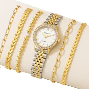 Descubra o charme e a praticidade do nosso Kit de Relógios e Pulseiras! Combinando funcionalidade e estilo, o relógio garante pontualidade com um design moderno, enquanto as pulseiras complementam com elegância e sofisticação. Ideal para elevar qualquer look, é a escolha perfeita para presentear ou se mimar.