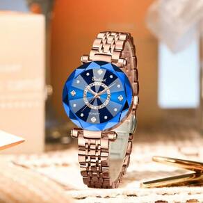 Relógio Feminino Binbond Quartz Cristal Multifacetado e Ouro Rosé