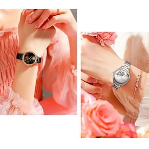 Relógio de pulso de design clássico especialmente criado para mulheres, O relógio vem com vidro 100% resistente durável e um mostrador fácil de ler as horas, movimento de quartzo oferece um visual elegante de alta qualidade e bateria durável e precisa. Relógio versátil combina com todas as ocasiões, sejam elas formais ou casuais. Use este relógio desde trabalho, lazer até atividades internas e externas ou para uso diário. são um presente perfeito para você e seus entes queridos.