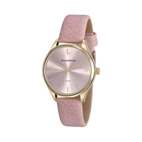 Características: Composição do Vidro: Cristal Mineral Material da Caixa: Metal Cor da Caixa: Dourado Material da Pulseira: Couro Cor da Pulseira: Rosa Chiclete Mostrador: rosa com Indicadores 12,1,2 e 3 em LOVE Dourado
