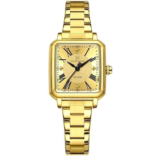Relógio Feminino Mostrador Quadrado Ponto De Luz Em Aço Inoxidavel Impermeavel Dourado