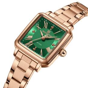 Relógio Feminino Mostrador Quadrado Ponto De Luz Em Aço Inoxidavel Impermeavel Verde