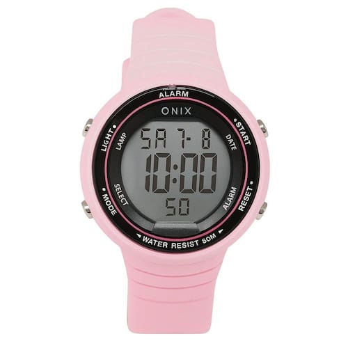 Relógio Feminino Onix Digital IT-3772121 Rosa Relógio Feminino Onix Digital IT-3772121 Rosa Marca: Onix Categoria: Digital ógico: Não Digital: Sim 1 Horário Calendário: Sim Despertador: Sim Mostra o Dia da Semana: Sim Mostra o Dia do Mês: Sim Cronômetro: Sim Luz: Sim Cor da Iluminação: Verde Resistente à Água: 5 ATM Pode ser para nadar no raso, por pouco tempo submerso - Respingos: Sim - Chuva: Sim - Lavar Carro: Sim - Lavar Louça: Sim - Natação: Sim - Mergulho: Não Característica do Vidro: Acrílico Tipo de Fecho: Fivela Cor da Caixa: Rosa Material da Caixa: Plástico Formato da Caixa: Redondo Diâmetro da Caixa: 43,00 mm Espessura da Caixa: 15,00 mm Cor da Pulseira: Rosa Material da Pulseira: Silicone Largura da Pulseira: 19,50 mm Comprimento Máximo da Pulseira: 250,00 mm Alimentação: Bateria Interna Peso Líquido: 0,040 Kg Modelo: IT-3772121 Cor Predominante: Rosa : 12 Meses Conteúdo da Embalagem: 01 Relógio 01 Embalagem 01 Termo de Marca: Não Informado