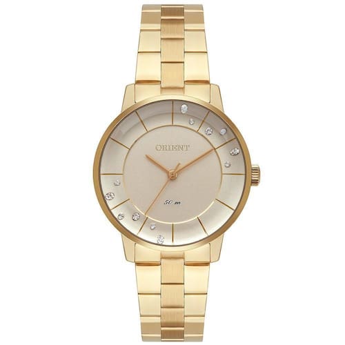Gênero: Feminino Caixa do relógio: Aço Inox Cor predominante do relógio: Dourado Cor da pulseira: Dourado Cor do mostrador: Champanhe com cristais austríacos de alta qualidade Vidro: Cristal mineral Marca: Orient Estilo: Casual Funções: Pressão: resistência à água 50 m Características: com caixa em aço+ipg e pulseira em aço+ipg Diâmetro da caixa: 33 mm Acompanha - Garantia de 12 meses do Fabricante - Manual de Instruções Ean: 7891529972908