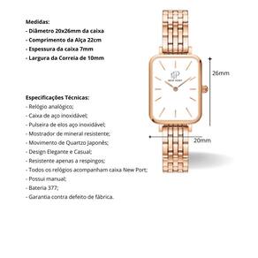 Medidas Relógio: - Diâmetro 20x26mm da caixa - Comprimento da Alça 22cm - Espessura da caixa 7mm - Largura da Correia de 10mm ***Não acompanha ferramenta para ajuste de pulseira*** Especificações Técnicas: - Aço Inoxidável; - Pulseira de metal com elos; - Mostrador de mineral resistente; - Movimento de Quartzo Japonês; - Design Minimalista e Casual; - Resistente apenas a respingos de água; - Todos os relógios acompanham caixa da New Port; - Possui manual New Port; - Bateria 377 para melhor durabilidade; - Relógio analógico; - Garantia contra defeito de fábricação.