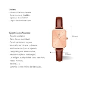 O Relógio Feminino New Port Quadrado Piermont Fundo Rosé, com sua pulseira de couro vegano marrom, possui um elegante diâmetro de 20x26mm. Sua caixa em metal rosê abriga um mostrador preto, protegido por vidro de mineral resistente, garantindo durabilidade e estilo. Adapte-se com elegância a todas as ocasiões com este relógio. Um acessório essencial que complementa perfeitamente seu estilo, seja nos ambientes corporativos ou nos eventos sociais mais sofisticados. Este relógio se destaca como uma escolha refinada e versátil. A pulseira é de fácil ajuste e se adapta bem a todos os pulsos. Medidas: - Diâmetro 20x26mm da caixa - Comprimento da Alça 22cm - Espessura da caixa 7mm - Largura da Correia de 10mm