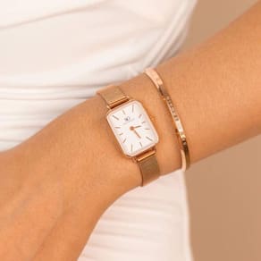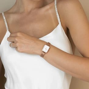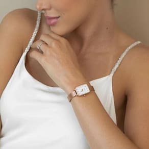 Relógio Feminino Saint Germain Quadrado Square Nolita Rosé Gold com pulseira de aço inoxidável rosé gold possui 20x26mm de diâmetro. A caixa é metal rosé gold e o mostrador branco, vidro com mineral endurecido com alta resistência.