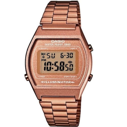 Relógio feminino rose casio vintage - b640wc-5adf - com e garantia nacional de 12 meses pela casio - um incrível relógio feminino digital, com um banho resistente rose gold resultado de uma mistura de minerais, incluindo o ouro e cobre não descasca , quadrado de tamanho médio, encaixa no pulso perfeitamente, mostrador também rose com display no centro, com resistência de 5 bar a água 50 metros , não tem problema se esquecer de tirá-lo para tomar banho. Espessura: 1,0 cm, medidas da caixa: 3,8 cm x 3,5 cm