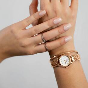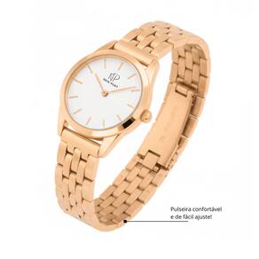 O Mini Pietra é o relógio perfeito para quem busca elegância em cada detalhe. Com design minimalista e dois ponteiros, ele une delicadeza e estilo em uma peça feminina e atemporal. Sua caixa de 24 mm com fundo branco traz leveza ao visual, enquanto a pulseira de elos gold rose adiciona um toque de brilho e sofisticação. Pequeno no tamanho, mas gigante na presença. Ideal para mulheres que apreciam acessórios discretos, modernos e cheios de personalidade.