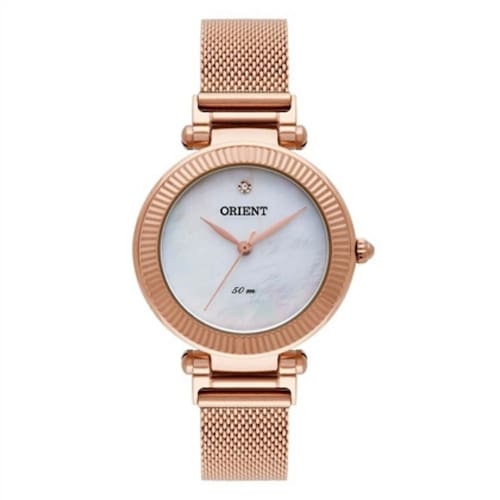 Relogio Feminino Orient Rose Gold Mostrador Madrepérola branco Com Pedra, pulseira mesh telinha Informações Básicas Marca: Orient Referência: FRSS0023 B1RX Gênero: Feminino : 1 Ano de Orient em todo o país Características Composição do Vidro: Cristal mineral Material da Caixa: Aço Inox Cor da Caixa: Rose Gold Mostrador: Fundo Branco Madrepérola Material da Pulseira: Aço Inox Cor da Pulseira: Rose Gold Medidas Diâmetro da Caixa: 3,3 cm Espessura da Caixa: 0,6 cm Resistência a Água: 50 Mts / 5 ATM Pode Lavar as Mãos: Sim Pode Usar em Água Corrente: Sim Pode Usar na Piscina: Não Pode Usar em Mergulho Profundo: Não Acompanha: Manual de Instruções Certificado de Nacional Embalagem da Orient