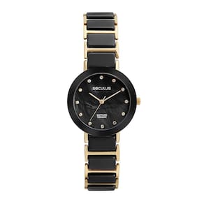 Cor do mostrador: Preto madrepérola com marcadores em cristal
