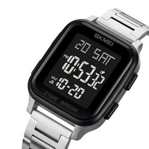 Relógio Feminino Skmei Digital 1859 Prata e Preto Relógio Feminino Skmei Digital 1859 Prata e Preto Marca: Skmei Categoria: Digital ógico: Não Digital: Sim 2 Horário Calendário: Sim Despertador: Sim Mostra o Dia da Semana: Sim Mostra o Dia do Mês: Sim Cronômetro: Sim Contador Regressivo: Sim Luz: Sim Cor da Iluminação: Verde Resistente à Água: 5 ATM Pode ser para nadar no raso, por pouco tempo submerso - Respingos: Sim - Chuva: Sim - Lavar Carro: Sim - Lavar Louça: Sim - Natação: Sim - Mergulho: Não Característica do Vidro: Cristal Mineral Tipo de Fecho: Dobrável com Botão Cor da Caixa: Prata Material da Caixa: Plástico Formato da Caixa: Quadrado Comprimento da Caixa: 42,00 mm Largura da Caixa: 37,00 mm Espessura da Caixa: 12,00 mm Cor da Pulseira: Prata Material da Pulseira: Aço Largura da Pulseira: 20,00 mm Comprimento Máximo da Pulseira: 260,00 mm Alimentação: Bateria Interna Peso Líquido: 0,080 Kg Modelo: 1859 Cor Predominante: Prata Cor Diferencial: Preto : 12 Meses Conteúdo da Embalagem: 01 Relógio 01 Embalagem 01 Termo de Marca: Não Informado