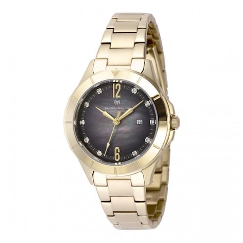 Este belo relógio TechnoMarine Luna Tides contém um preciso movimento de quartzo, além de uma caixa dourada. Seu mostrador exibe uma combinação de branco, preto e madrepérola, protegido por um cristal mineral altamente resistente. Este acessório é complementado por uma pulseira dourada e oferece resistência à água de até 50 metros. Construindo cada peça para os corajosos de coração, os relógios TechnoMarine são uma demonstração exemplar de versatilidade, estabelecendo um precedente para enfrentar as atividades mais aventureiras. Em algumas instâncias, as cores nas imagens podem diferir ligeiramente do produto real.