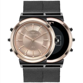 Características: Relógio Technos feminino Coleção Curvas. Edição limitada em homenagem a Oscar Niemeyer, ícone da arquitetura mundial, um brasileiro que sempre esteve à frente do tempo. Com construção reversível inovadora, eles possuem uma caixa com dois lados, sendo um analógico e outro digital, basta puxar a pulseira para girar a caixa. Modelo com caixa tamanho 4,0cm e pulseira de aço mesh em banho rosé.
