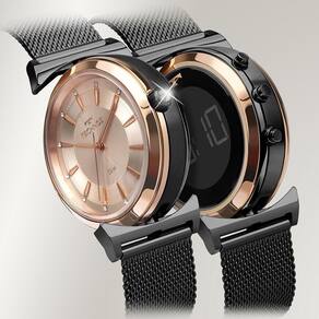Tipo: Analogico/Digital Caixa: Aço Cor da caixa: Preto Material da pulseira: Aço Cor da Pulseira: Preto Formato: Redondo Cor do mostrador: Rosé Garantia: 12 meses Largura da caixa: 40 mm Espessura da caixa: 12 mm Resistência à água: 5 ATM