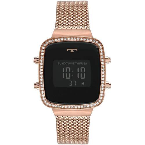 Características: Relógio Feminino Technos Trend Rosé BJ3478AB/4P. É um modelo de relógio com maquinismo digital, pulseira mesh de aço em banho rosé e caixa tamanho 3,4 cm de diâmetro. Mostrador na cor preta, com luz noturna e alarme. A composição do aro com delicados cristais aplicados tornam este modelo elegante e sofisticado. Tem nível de resistência à água em 5 ATM. É um produto original, acompanha Nota fiscal e Garantia de 12 meses.