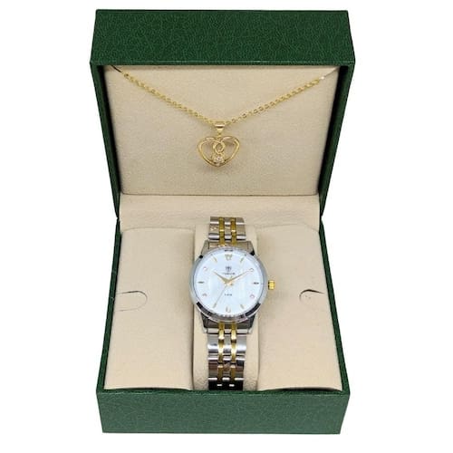 Relógio Feminino Tuguir ógico 2136 Prata e Dourado Relógio Feminino Tuguir ógico 2136 Prata e Dourado Marca: Tuguir Categoria: ógico ógico: Sim 1 Horário Ponteiros Fluorescentes: Selecione Digital: Não Luz: Selecione Resistente à Água: 5 ATM Pode ser para nadar no raso, por pouco tempo submerso - Respingos: Sim - Chuva: Sim - Lavar Carro: Sim - Lavar Louça: Sim - Natação: Sim - Mergulho: Não Característica do Vidro: Cristal Mineral Tipo de Fecho: Dobrável com Botão Cor da Caixa: Prata Material da Caixa: Metal Banho IP Formato da Caixa: Redondo Diâmetro da Caixa: 32,00 mm Espessura da Caixa: 9,00 mm Cor da Pulseira: Prata Material da Pulseira: Aço Largura da Pulseira: 13,50 mm Comprimento Máximo da Pulseira: 260,00 mm Alimentação: Bateria Interna Peso Líquido: 0,060 Kg Modelo: 2136 Cor Predominante: Prata Cor Diferencial: Dourado : 12 Meses Conteúdo da Embalagem: 01 Relógio 01 Embalagem 01 Termo de Marca: Não Informado Ean: 7891368318264