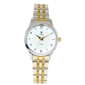 Relógio Feminino Tuguir ógico 2136 Prata e Dourado Relógio Feminino Tuguir ógico 2136 Prata e Dourado Marca: Tuguir Categoria: ógico ógico: Sim 1 Horário Ponteiros Fluorescentes: Selecione Digital: Não Luz: Selecione Resistente à Água: 5 ATM Pode ser para nadar no raso, por pouco tempo submerso - Respingos: Sim - Chuva: Sim - Lavar Carro: Sim - Lavar Louça: Sim - Natação: Sim - Mergulho: Não Característica do Vidro: Cristal Mineral Tipo de Fecho: Dobrável com Botão Cor da Caixa: Prata Material da Caixa: Metal Banho IP Formato da Caixa: Redondo Diâmetro da Caixa: 32,00 mm Espessura da Caixa: 9,00 mm Cor da Pulseira: Prata Material da Pulseira: Aço Largura da Pulseira: 13,50 mm Comprimento Máximo da Pulseira: 260,00 mm Alimentação: Bateria Interna Peso Líquido: 0,060 Kg Modelo: 2136 Cor Predominante: Prata Cor Diferencial: Dourado : 12 Meses Conteúdo da Embalagem: 01 Relógio 01 Embalagem 01 Termo de Marca: Não Informado Ean: 7891368318264