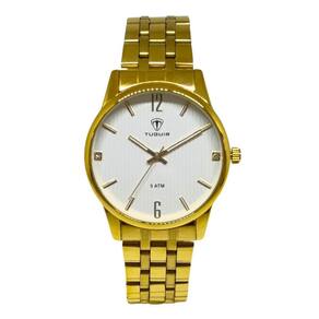 Relógio Feminino Tuguir Analógico 2139 Dourado e Branco Relógio Feminino Tuguir Analógico 2139 Dourado e Branco Marca: Tuguir Categoria: Analógico Analógico: Sim 1 Horário Ponteiros Fluorescentes: Não Digital: Não Luz: Selecione Resistente à Água: 5 ATM Pode ser Utilizado para nadar no raso, por pouco tempo submerso - Respingos: Sim - Chuva: Sim - Lavar Carro: Sim - Lavar Louça: Sim - Natação: Sim - Mergulho: Não Característica do Vidro: Cristal Mineral Tipo de Fecho: Dobrável com Botão Cor da Caixa: Dourado Material da Caixa: Metal Banho IP Formato da Caixa: Redondo Diâmetro da Caixa: 39,00 mm Espessura da Caixa: 11,00 mm Cor da Pulseira: Dourado Material da Pulseira: Aço Largura da Pulseira: 17,50 mm Comprimento Máximo da Pulseira: 250,00 mm Alimentação: Bateria Interna Peso Líquido: 0,080 Kg Modelo: 2139 Cor Predominante: Dourado Cor Diferencial: Branco : 12 Meses Conteúdo da Embalagem: 01 Relógio 01 Embalagem 01 Termo de