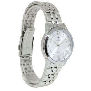 Relógio Feminino Tuguir Analógico 9182B PrataMarca: Tuguir Categoria: Analógico Analógico: Sim (1 Horário) Ponteiros Fluorescentes: Selecione Digital: Não Luz: SelecioneResistente à Água: 5 ATM (Pode ser utilizado para nadar no raso, por pouco tempo submerso) - Respingos: Sim - Chuva: Sim - Lavar Carro: Sim - Lavar Louça: Sim - Natação: Sim - Mergulho: Não Característica do Vidro: Cristal Mineral Tipo de Fecho: Dobrável com Botão Cor da Caixa: Prata Material da Caixa: Metal Banho IP Formato da Caixa: Redondo Diâmetro da Caixa: 32,00 (mm) Espessura da Caixa: 9,00 (mm) Cor da Pulseira: Prata Material da Pulseira: Aço Largura da Pulseira: 13,00 (mm) Comprimento Máximo da Pulseira: 250,00 (mm) Alimentação: Bateria Interna Peso Líquido: 0,060 Kg Modelo: 9182B Cor Predominante: Prata Garantia: 12 MesesConteúdo da Embalagem: 01 Relógio 01 Embalagem 01 Termo de Garantia