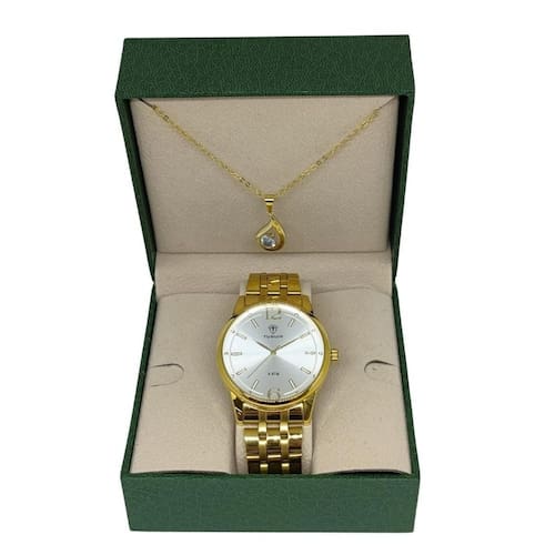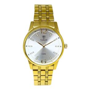 Relógio Feminino Tuguir Analógico 9182E Dourado e Prata Relógio Feminino Tuguir Analógico 9182E Dourado e Prata Marca: Tuguir Categoria: Analógico Analógico: Sim 1 Horário Ponteiros Fluorescentes: Não Digital: Não Luz: Selecione Resistente à Água: 5 ATM Pode ser Utilizado para nadar no raso, por pouco tempo submerso - Respingos: Sim - Chuva: Sim - Lavar Carro: Sim - Lavar Louça: Sim - Natação: Sim - Mergulho: Não Característica do Vidro: Cristal Mineral Tipo de Fecho: Dobrável com Botão Cor da Caixa: Dourado Material da Caixa: Metal Banho IP Formato da Caixa: Redondo Diâmetro da Caixa: 39,00 mm Espessura da Caixa: 11,00 mm Cor da Pulseira: Dourado Material da Pulseira: Aço Largura da Pulseira: 17,00 mm Comprimento Máximo da Pulseira: 270,00 mm Alimentação: Bateria Interna Peso Líquido: 0,080 Kg Modelo: 9182E Cor Predominante: Dourado Cor Diferencial: Prata : 12 Meses Conteúdo da Embalagem: 01 Relógio 01 Embalagem 01 Termo de Ean: 7891368318202