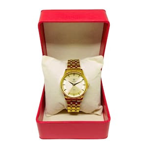 Relógio Feminino Tuguir Analógico 9182F DouradoMarca: Tuguir Categoria: Analógico Analógico: Sim (1 Horário) Ponteiros Fluorescentes: Selecione Digital: Não Luz: SelecioneResistente à Água: 5 ATM (Pode ser utilizado para nadar no raso, por pouco tempo submerso) - Respingos: Sim - Chuva: Sim - Lavar Carro: Sim - Lavar Louça: Sim - Natação: Sim - Mergulho: Não Característica do Vidro: Cristal Mineral Tipo de Fecho: Dobrável com Botão Cor da Caixa: Dourado Material da Caixa: Metal Banho IP Formato da Caixa: Redondo Diâmetro da Caixa: 39,00 (mm) Espessura da Caixa: 11,00 (mm) Cor da Pulseira: Dourado Material da Pulseira: Aço Largura da Pulseira: 17,50 (mm) Comprimento Máximo da Pulseira: 270,00 (mm) Alimentação: Bateria Interna Peso Líquido: 0,080 Kg Modelo: 9182F Cor Predominante: Dourado Garantia: 12 MesesConteúdo da Embalagem: 01 Relógio 01 Embalagem 01 Termo de Garantia
