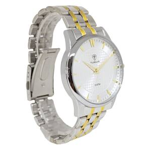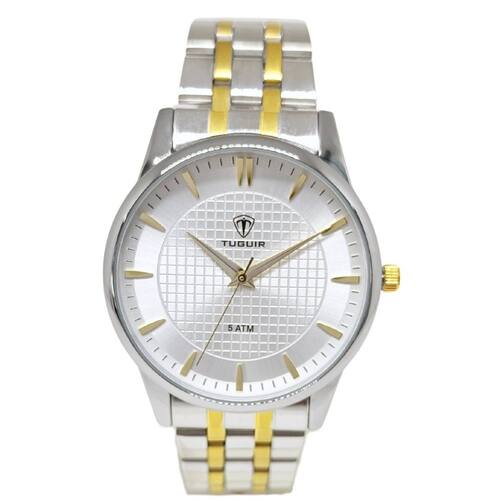 Relógio Feminino Tuguir Analógico 9182F Prata e DouradoMarca: Tuguir Categoria: Analógico Analógico: Sim (1 Horário) Ponteiros Fluorescentes: Selecione Digital: Não Luz: SelecioneResistente à Água: 5 ATM (Pode ser utilizado para nadar no raso, por pouco tempo submerso) - Respingos: Sim - Chuva: Sim - Lavar Carro: Sim - Lavar Louça: Sim - Natação: Sim - Mergulho: Não Característica do Vidro: Cristal Mineral Tipo de Fecho: Dobrável com Botão Cor da Caixa: Prata Material da Caixa: Metal Banho IP Formato da Caixa: Redondo Diâmetro da Caixa: 39,00 (mm) Espessura da Caixa: 11,00 (mm) Cor da Pulseira: Prata Material da Pulseira: Aço Largura da Pulseira: 17,50 (mm) Comprimento Máximo da Pulseira: 280,00 (mm) Alimentação: Bateria Interna Peso Líquido: 0,080 Kg Modelo: 9182F Cor Predominante: Prata Cor Diferencial: Dourado Garantia: 12 MesesConteúdo da Embalagem: 01 Relógio 01 Embalagem 01 Termo de Garantia