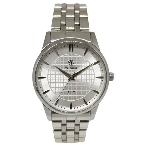 Relógio Feminino Tuguir Analógico 9182F PrataMarca: Tuguir Categoria: Analógico Analógico: Sim (1 Horário) Ponteiros Fluorescentes: Selecione Digital: Não Luz: SelecioneResistente à Água: 5 ATM (Pode ser utilizado para nadar no raso, por pouco tempo submerso) - Respingos: Sim - Chuva: Sim - Lavar Carro: Sim - Lavar Louça: Sim - Natação: Sim - Mergulho: Não Característica do Vidro: Cristal Mineral Tipo de Fecho: Dobrável com Botão Cor da Caixa: Prata Material da Caixa: Metal Banho IP Formato da Caixa: Redondo Diâmetro da Caixa: 39,00 (mm) Espessura da Caixa: 11,00 (mm) Cor da Pulseira: Prata Material da Pulseira: Aço Largura da Pulseira: 17,50 (mm) Comprimento Máximo da Pulseira: 270,00 (mm) Alimentação: Bateria Interna Peso Líquido: 0,080 Kg Modelo: 9182F Cor Predominante: Prata Garantia: 12 MesesConteúdo da Embalagem: 01 Relógio 01 Embalagem 01 Termo de Garantia