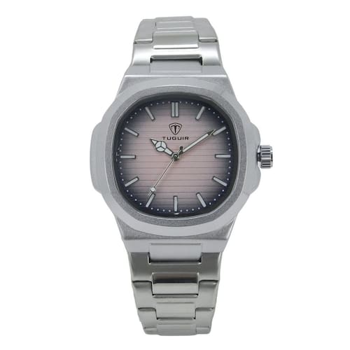 Marca: Tuguir Categoria: Analógico Analógico: Sim (1 Horário) Ponteiros Fluorescentes: Sim Digital: Não Luz: Não Resistente à Água: 5 ATM - Respingos: Sim - Chuva: Sim - Lavar Carro: Sim - Lavar Louça: Sim - Natação: Sim - Mergulho: Não Característica do Vidro: Cristal Mineral Tipo de Fecho: Dobrável com Botão Cor da Caixa: Prata Material da Caixa: Metal Banho IP Formato da Caixa: Quadrado Comprimento da Caixa: 40,00 (mm) Largura da Caixa: 40,00 (mm) Espessura da Caixa: 10,50 (mm) Cor da Pulseira: Prata Material da Pulseira: Aço Largura da Pulseira: 19,50 (mm) Comprimento Máximo da Pulseira: 280,00 (mm) Alimentação: Bateria Interna Peso Líquido: 0,115 Kg Modelo: 9218 Cor Predominante: Prata Cor Diferencial: Rosa Garantia: 12 Meses