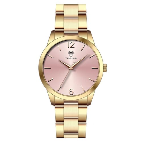 Relógio Feminino Tuguir Analógico TG112 - Dourado Relógio Feminino Tuguir Analógico TG112 - Dourado Marca: Tuguir Categoria: Analógico Analógico: Sim 1 Horário Ponteiros Fluorescentes: Não Digital: Não Calendário: Não Despertador: Não Mostra o Dia da Semana: Não Mostra o Dia do Mês: Não Cronômetro: Não Contador Regressivo: Não Luz: Não Resistente à Água: 3 ATM Resiste a imersões breves - Respingos: Sim - Chuva: Sim - Lavar Carro: Sim - Lavar Louça: Sim - Natação: Não - Mergulho: Não Característica do Vidro: Acrílico Tipo de Fecho: Dobrável com Botão Cor da Caixa: Dourada Material da Caixa: Metal Alloy Formato da Caixa: Redondo Diâmetro da Caixa: 40,00 mm Espessura da Caixa: 8,20 mm Cor da Pulseira: Dourada Material da Pulseira: Metal Largura da Pulseira: 18,10 mm Comprimento Máximo da Pulseira: 220,00 mm Alimentação: Bateria Interna Peso Líquido: 0,075 Kg Modelo: TG112 Cor Predominante: Dourado Garantia: 12 Meses