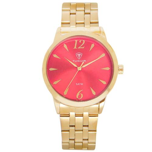 Relógio Feminino Tuguir ógico TG141 - Dourado e Rosa Relógio Feminino Tuguir ógico TG141 - Dourado e Rosa Marca: Tuguir Categoria: ógico ógico: Sim 1 Horário Ponteiros Fluorescentes: Não Digital: Não Calendário: Não Despertador: Não Mostra o Dia da Semana: Não Mostra o Dia do Mês: Não Cronômetro: Não Contador Regressivo: Não Luz: Não Resistente à Água: 5 ATM Pode ser para nadar no raso, por pouco tempo submerso - Respingos: Sim - Chuva: Sim - Lavar Carro: Sim - Lavar Louça: Sim - Natação: Sim - Mergulho: Não Característica do Vidro: Cristal Mineral Tipo de Fecho: Dobrável com Botão Cor da Caixa: Dourado Material da Caixa: Metal Banho IP Formato da Caixa: Redondo Diâmetro da Caixa: 39,00 mm Espessura da Caixa: 8,30 mm Cor da Pulseira: Dourado Material da Pulseira: Aço Largura da Pulseira: 18,00 mm Comprimento Máximo da Pulseira: 220,00 mm Alimentação: Bateria Interna Peso Líquido: 0,085 Kg Modelo: TG141 Cor Predominante: Dourado Cor Diferencial: Rosa : 12 Meses Conteúdo da Embalagem: 01 Relógio 01 Embalagem 01 Termo de Marca: Não Informado