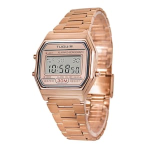 Relógio Feminino Tuguir Digital TG136 - Rose Relógio Feminino Tuguir Digital TG136 - Rose Marca: Tuguir Categoria: Digital Analógico: Não Digital: Sim 1 Horário Calendário: Sim Despertador: Sim Mostra o Dia da Semana: Sim Mostra o Dia do Mês: Sim Cronômetro: Sim Contador Regressivo: Não Luz: Sim Cor da Iluminação: Verde Resistente à Água: 3 ATM Resiste a imersões breves - Respingos: Sim - Chuva: Sim - Lavar Carro: Sim - Lavar Louça: Sim - Natação: Não - Mergulho: Não Característica do Vidro: Cristal Mineral Tipo de Fecho: Gancho Cor da Caixa: Rose Material da Caixa: Metal Banho IP Formato da Caixa: Quadrado Comprimento da Caixa: 36,00 mm Largura da Caixa: 33,00 mm Espessura da Caixa: 9,60 mm Cor da Pulseira: Rose Material da Pulseira: Aço Largura da Pulseira: 14,60 mm Comprimento Máximo da Pulseira: 200,00 mm Alimentação: Bateria Interna Peso Líquido: 0,060 Kg Modelo: TG136 Cor Predominante: Rose : 12 Meses Conteúdo da Embalagem: 01 Relógio 01 Embalagem 01 Termo de Marca: Não Informado