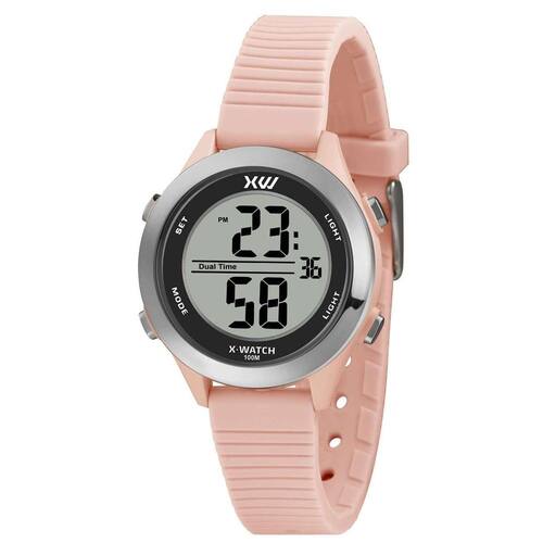 O Relógio Feminino XFPPD088W BXRX da X-Watch é o acessório perfeito para utilizar em qualquer ocasião. Confeccionado com alta qualidade e um design diferenciado, este relógio é ideal para deixar seus looks mais charmosos e acrescentar praticidade ao seu dia-a-dia. Seu modelo atemporal, combinado com sua ótima funcionalidade, resulta em uma peça bonita e moderna. Especificações Marca: X-Watch Gênero: Feminino Modelo: XFPPD088W BXRX Cor da pulseira: Rosa Cor do mostrador: Preto com detalhes em branco Material da caixa: Resina Material da pulseira: Silicone Material do vidro: Acrílico Tamanho da caixa: 50 mm Resistente a água: Sim Nível de resistência a água: 100 m Funções: Digital, Iluminação, Calendário, Cronógrafo, Alarme, Timer, Dual Time Alimentação: Bateria Fundo: Parafusado : 1 ano Aviso: Imagem meramente ilustrativa. Pode haver alteração da cor, conforme o seu monitor. Marca: X-Watch Ean: 7891529976906