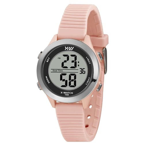 O Relógio Feminino XFPPD088W BXRX da X-Watch é o acessório perfeito para utilizar em qualquer ocasião. Confeccionado com alta qualidade e um design diferenciado, este relógio é ideal para deixar seus looks mais charmosos e acrescentar praticidade ao seu dia-a-dia. Seu modelo atemporal, combinado com sua ótima funcionalidade, resulta em uma peça bonita e moderna. Especificações Marca: X-Watch Gênero: Feminino Modelo: XFPPD088W BXRX Cor da pulseira: Rosa Cor do mostrador: Preto com detalhes em branco Material da caixa: Resina Material da pulseira: Silicone Material do vidro: Acrílico Tamanho da caixa: 50 mm Resistente a água: Sim Nível de resistência a água: 100 m Funções: Digital, Iluminação, Calendário, Cronógrafo, Alarme, Timer, Dual Time Alimentação: Bateria Fundo: Parafusado : 1 ano Aviso: Imagem meramente ilustrativa. Pode haver alteração da cor, conforme o seu monitor. Marca: Não Informado