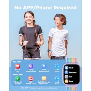- Sem/com aplicativo: o relógio rastreador de fitness infantil BIGGERFIVE pode ser utilizado separadamente sem aplicativo e telefone. Mas com o aplicativo, você pode explorar mais funções. Compatível com smartphones Android 6.0+ e iOS 9.0+.