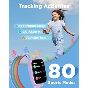 - Monitoramento abrangente da saúde: monitora a frequência cardíaca em tempo real e rastreia os padrões de sono para promover o bem-estar do seu filho.