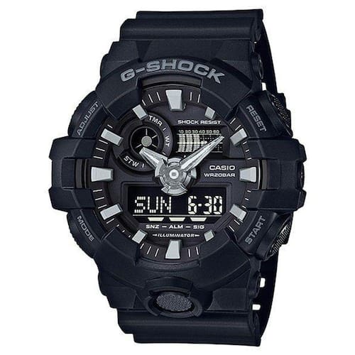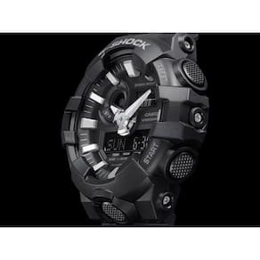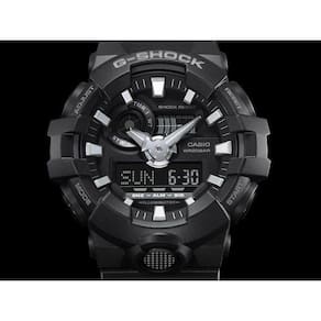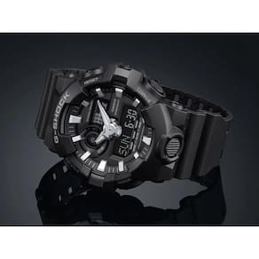 O Relógio G-Shock GA-700 Preto Casio é um acessório masculino que define muito bem o homem moderno. Seus ponteiros para hora e minuto são multidimensionais, o que dá a impressão de terem sido talhados a partir de um pedaço de metal, resultando num design muito mais moderno. O novo formato desses relógios não só melhora a leitura, mas também projeta uma sensação de solidez. Um botão frontal na posição de 6 horas incrementa o estilo dinâmico e vanguardista.