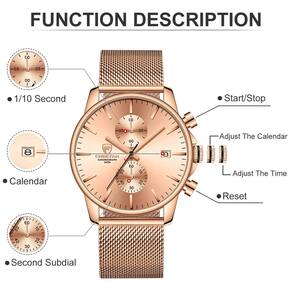Descrição do produto Nosso design totalmente novo, a capa redonda atende à próxima geração de clássicos, o que torna nosso relógio com estilo de moda casual para o seu uso diário. Artesanato de aço macio, não arranha seu pulso ou tecido, combina com qualquer roupa e qualquer ocasião. Você também pode ajustar o comprimento da pulseira de acordo com sua própria escala, nós fornecemos o ajustador de pulseira juntos. Além disso, escolher nossos relógios não é apenas para um relógio, o que significa uma melhor qualidade e pós-serviços também. Características do produto **Movimento: relógio multifuncional com funcionalidade de cronômetro, o movimento do cronógrafo é normalmente integrado em dois sub-olhos separados por 1/10 segundos e segundos. **Resistente à água até 30 m: adequado para curtos períodos de natação e banho recreativos, mas não para mergulho ou snorkel. **O mostrador do relógio é muito claro, bonito e grande. Vidro de cristal mineral Hardlex. **Pulseira de aço de metal com fivela de pino para se ajustar ao seu pulso, nossa alça de malha de alta qualidade é conhecida por sua suavidade e capacidade de ficar bem ao longo do tempo. **Este relógio é encantador para todas as ocasiões, como turismo, mesa, deslocamento diário ou festa. Parâmetros Forma da caixa: redonda Material: Aço inoxidável Peso líquido: 105 g. Espessura da caixa: 12,78 mm. Diâmetro da caixa: 42 mm. Largura da pulseira: 22 mm. Comprimento da pulseira: 245 mm Nossos serviços - Com 15 dias de recarga, política de substituição de 30 dias e fabricação de 1 ano pós-venda - Se você tiver algum outro problema, sinta-se à vontade para entrar em contato conosco, responderemos imediatamente com sua satisfação. O pacote inclui: 1 relógio de couro de alta qualidade. 1 cartão 1 caixa de presente. - ?Movimento: movimento analógico de quartzo importado japonês e bateria, fornece tempo preciso e corrida a longo prazo. O relógio pode ser utilizado por mais de 1 ano. - ?Material: A pulseira é feita de malha de aço inoxidável, confortável, macia e respirável. Óculos minerais, caixa prateada, adequado para todos os tipos de ocasiões. - ?Cronógrafo esportivo: o submostrador multifuncional pode funcionar, cronógrafo, calendário, segundos de corrida. Fornecer a você uso multifunções. - ?À prova d'água a 3 ATM: este relógio é à prova d'água a 30 m, pode suportar respingos diários ou imersão curta em água, mas não nadar e tomar banho, mergulho ou snorkel. - ?Serviço pós-venda: cada produto tem 1 ano de serviço pós-venda. Se você tiver alguma dúvida sobre o produto, comigo imediatamente e lhe daremos uma solução satisfatória.