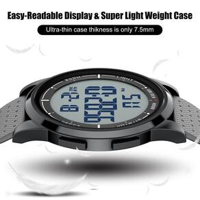 Descrição do produto: Nosso design novo, a caixa redonda atende à próxima geração de esportes da moda, o que torna nosso relógio um estilo casual de moda para o seu uso diário. Pulseira de borracha lisa, não arranha seu pulso ou pano, combina muito bem com qualquer roupa e qualquer ocasião. Você também pode ajustar o comprimento da pulseira para 25 cm de acordo com sua própria escala. Além disso, escolher nossos relógios não é apenas para um relógio, o que significa uma melhor qualidade e serviços pós-venda também. Características do produto: **MOVIMENTO: Design minimalista casual moderno com caixa preta de relógios esportivos digitais. Este elegante relógio de pulso masculino é muito adequado para qualquer ocasião. **Resistente à água até 50 m: adequado para nadar em águas rasas e tomar banho frio, mas mantenha longe de água quente e vapor, não adequado para atividades subaquáticas por muito tempo, como mergulho. **A face do relógio é muito clara, agradável e fácil de ler. Lente acrílica/vidro de cristal mineral Hardlex. **Este relógio é encantador para todas as ocasiões, como turismo, mesa, férias diárias ou festas. Parâmetros Forma da caixa: redonda Material da caixa: resina/aço de liga Peso líquido: 39 g - 57 g Espessura da caixa: 8 mm. Diâmetro da caixa: 43 mm. Largura da pulseira: 22 mm. Comprimento da pulseira: 250 mm. Nossos serviços - Com cobrança de 15 dias, política de substituição de 30 dias e 1 ano de serviço pós-venda. - Se você tiver outros problemas, sinta-se à vontade para entrar em contato conosco, responderemos imediatamente com sua satisfação. ***Cuidados recomendados*** 1: Limpar com um pano macio regularmente é altamente recomendado. 2: O contato constante com a água pode reduzir a durabilidade do seu relógio. 3: Não aperte nenhum botão debaixo d'água e evite o uso em temperaturas extremamente quentes ou frias. A embalagem inclui: 1 relógio digital. 1 cartão de garantia. 1 caixa de presente. 1 manual do utilizador (sem garantia - [Relógios multifuncionais digitais]: tela de retroiluminação EL importada, a hora pode ser claramente exibida na luz de fundo. O relógio digital também tem 12/24H, cronômetro, alarme, data e dia. - [Caixa de aço metálico ultrafina]: espessura da caixa de relógio fina de jantar minimalista (apenas 8 mm), pulseira de borracha macia ajustável de 250 mm para circunferência de pulso de até 9,8 polegadas, caixa de liga de aço de 43 mm com vidro hardlex, fácil de ler. - [À prova d'água de 5 ATM]: 50 m à prova d'água, em geral, adequado para nadar em águas rasas e banho frio, mas mantenha longe de água quente e vapor, não é adequado para atividades subaquáticas por muito tempo, como mergulho. - [Coleções esportivas]: Adequado para homens, especialmente para aqueles que gostam de praticar esportes, as multifunções o tornam perfeito para esportes ao ar livre e interno, como corrida, escalada e assim por diante. - [Pós-serviço]: Um presente perfeito para o Dia dos Namorados, aniversário, negócios, aniversário, Dia de Ação de Graças, Dia dos Pais, Natal etc. Oferta pós-serviço de 12 meses, se você tiver dúvidas, .