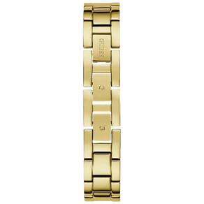 O destaque está na pulseira: em aço inoxidável dourado, ela traz elos largos no estilo corrente, reforçando a identidade ousada e marcante da Guess, além de proporcionar conforto e firmeza no uso.