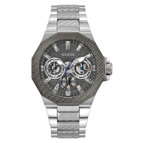 Mecanismo: Analógico (Quartzo) Gênero: Masculino Visor: Cinza Vidro: Cristal mineral Prova d'água: 50m Características: Cronógrafo Diâmetro da caixa: 45 mm Garantia: 1 ano pela fabricante Guess