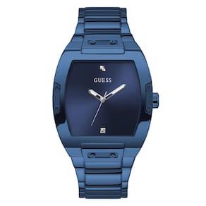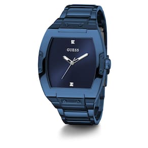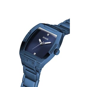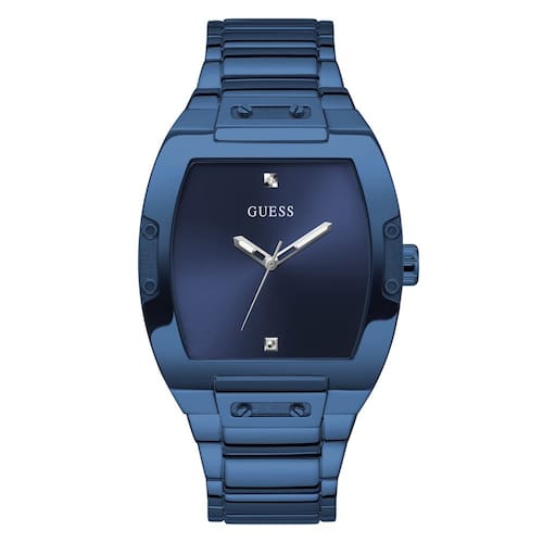 GUESS Relógio masculino Trend Casual Tonneau Diamond 43 mm, Azul/Azul/Azul, Phoenix - A pulseira azul de aço inoxidável de 27 mm serve para pulsos de até 19,7 cm de circunferência - Mostrador azul e ponteiros prateados com dois marcadores de diamante - Caixa de aço inoxidável azul de 43 mm - Cristal de vidro mineral - Resistente à água até 50 metros: em geral, adequado para períodos curtos de natação recreativa, mas não para mergulho ou snorkeling