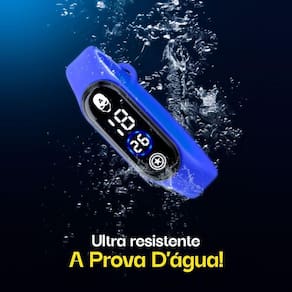 - Relógio digital infantil em formato bracelete, com pulseira ajustável em silicone