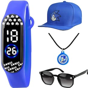Kit Infantil Sonic - Relógio Digital, Boné, Óculos de Sol, Colar e Pingente