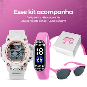 Relógio Infantil Digital + Óculos Proteção Sol UV + Caixa Criança Qualidade Premium Silicone Data Kit Infantil Orizom Kids - Relógios, Óculos de Sol e Caixa Premium Temática da Barbie Seu filho merece o melhor em estilo e diversão Apresentamos o Kit Infantil Orizom Kids, um conjunto exclusivo com relógios e óculos de sol temáticos da Barbie, perfeito para crianças e adolescentes que adoram acessórios estilosos. O que você vai receber: - Relógio Infantil Orizom Kids - Branco com Detalhes Rosa: resistente à água, com estrutura moderna, pulseira ajustável e design delicado. - Relógio Infantil Bracelete Orizom Kids - Temática da Barbie: formato inovador, cor rosa vibrante e ajuste confortável para qualquer pulso. - Óculos de Sol Infantil Orizom Kids - Modelo Rosa com Lente Preta: em acetato rosa, lentes preta ovaladas e proteção UV. - Caixa Premium Orizom Kids - Temática da Barbie: caixa exclusiva com acabamento brilhante e glitter rosa, ideal para presentear. Perfeito para diversas ocasiões, como dia a dia, festas e passeios, este kit é também uma excelente opção de presente para aniversários e outras datas comemorativas.
